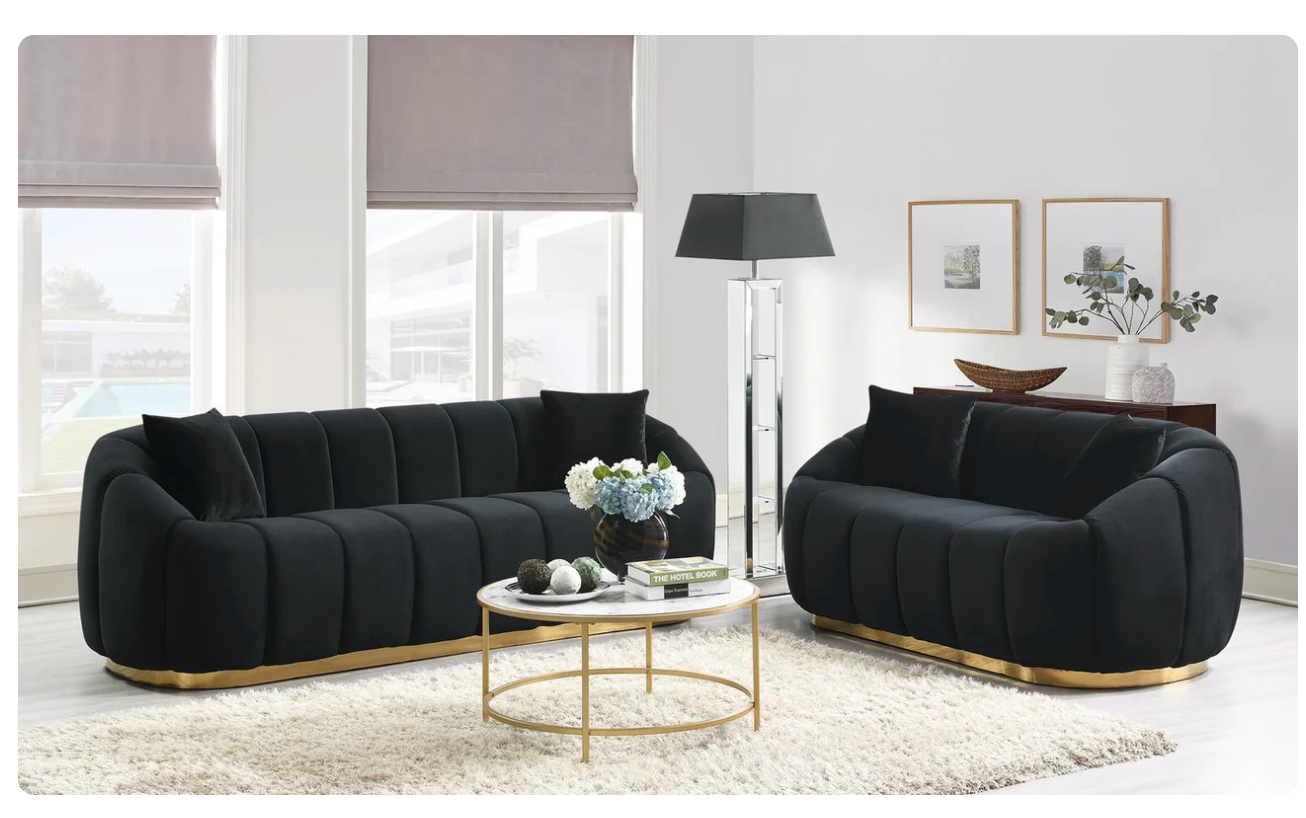 Plush and modern, this black corduroy sectional offers deep seating, clean lines, and a matching ottoman—perfect for lounging in style and comfort.