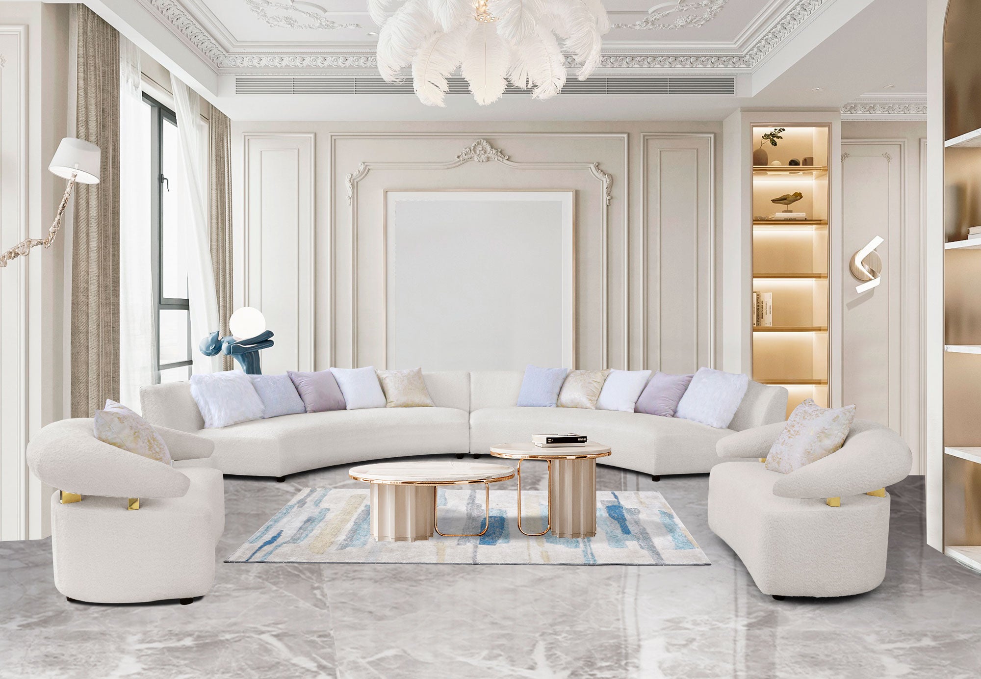 Bring an air of sophistication and tranquility to your living space with this stunning curved velvet sectional sofa. Upholstered in a soft cream velvet, this piece...