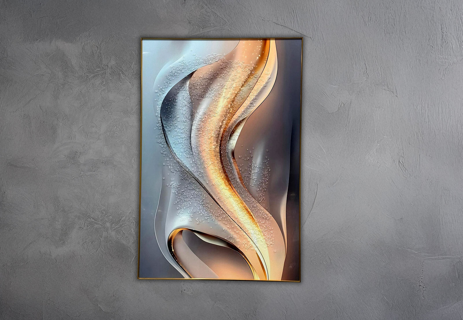 A mesmerizing abstract piece with fluid golden and metallic hues, evoking movement and luxury.