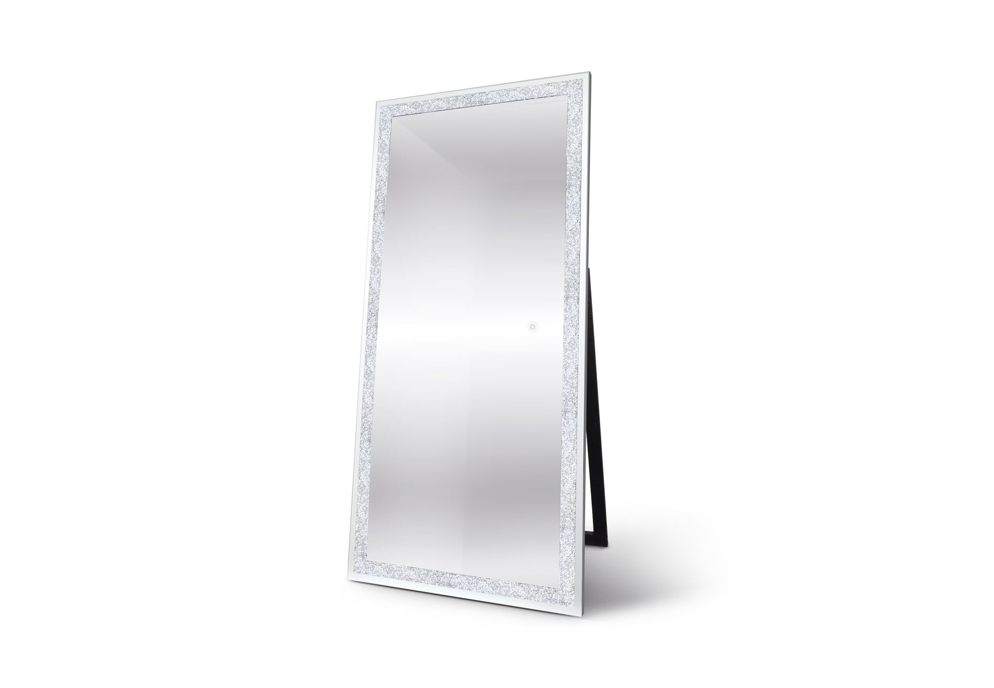 Add a touch of glamour to your space with this full-length LED floor mirror. Framed with sparkling crystal accents and bright LED lighting, this mirror brings a modern and luxurious vibe to any room. Its sleek, freestanding design is perfect for bedrooms, dressing rooms, or studios, offering both functionality and elegance. The LED lights ensure clear visibility, making it ideal for makeup application, outfit checks, or enhancing the ambiance of your space.