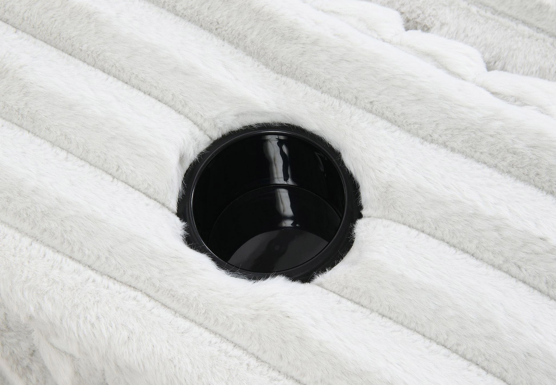 Plush, oversized chaise lounge chair with soft ribbed white upholstery and clean, modern lines perfect for relaxing in style and comfort.