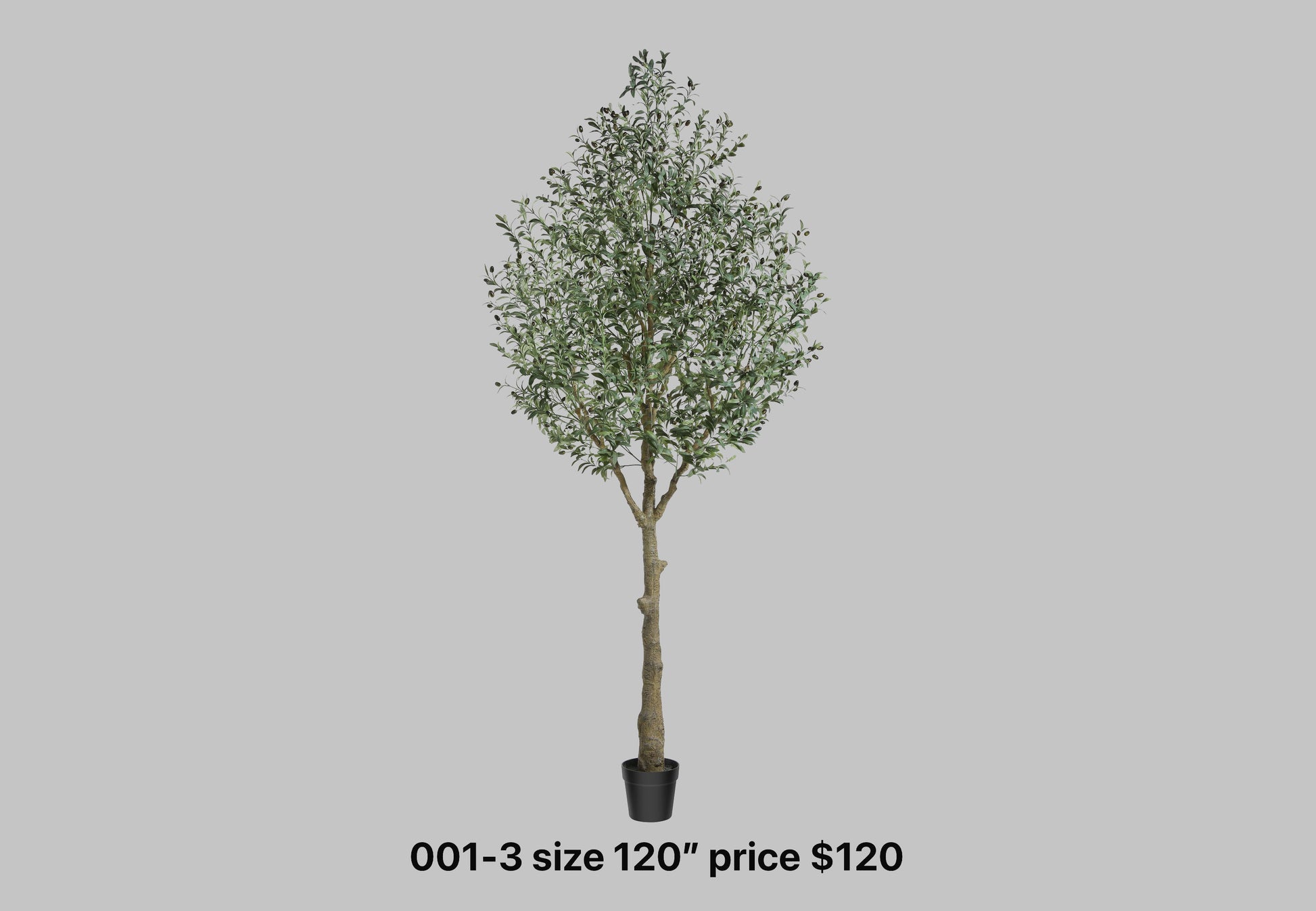 A tall, natural-looking olive tree with a rustic trunk and dense foliage.